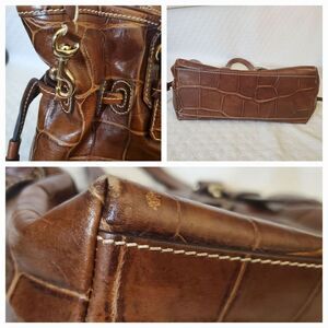 Medium size Dooney & Bourke Medium Chiara Brown Leather Handbag. Pre-owned in overall great condition. Light imperfections have been pictured. Inside is very clean. Please refer to pictures for best description, condition verification, and dimensions.