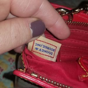Dooney & Bourke Red Chain Strap Crossbody Patent Leather Bag. Silver chains. Front has minor stain that you can't see when carrying it. Otherwise in great condition! Small bag for a night out or special event.
