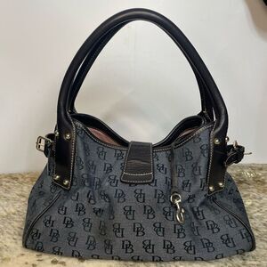 Dooney & Bourke Signature Logo Lock Satchel Black Navy Designer Purse Monogram