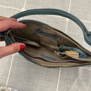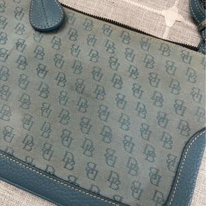 Dooney & Burke Blue Canvas Shoulder Bag. This bag is dirty but still in good shape in terms of the overall structure. It is priced according to its condition.