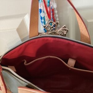 Excellent condition, rarely used, Green with tan trim leather Dooney handbag