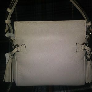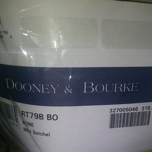 Brand new. NEVER USED Dooney and Bourke samba satchell. Tags still on in plastic. Dust cover inside of purse. Perfect size. Bone colored.