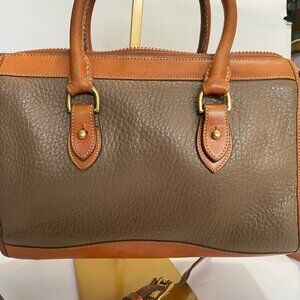 Dooney and Bourke Beige British Tan AWL Satchel Shoulder Strap Key Tag EUC