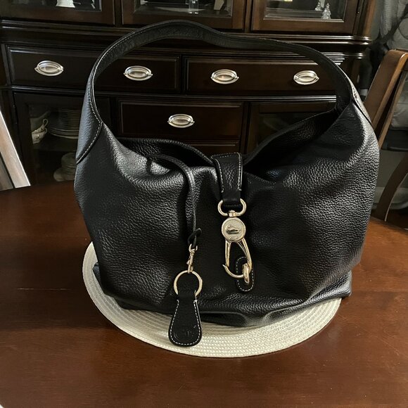 Dooney and Bourke Black Leather Shoulder Bag with inside key hook.