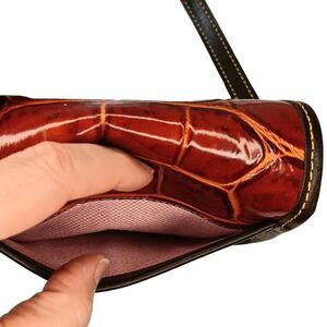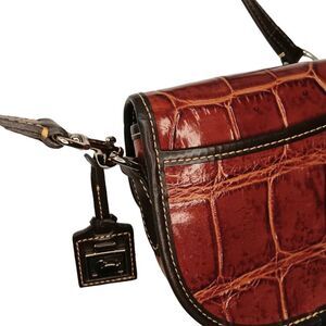 Dooney and Bourke Brown Red Faux Crocodile Embossed Small Mini Crossbody Purse