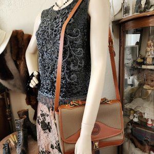 Secures easily with the Arrowhead turn-lock brass closure that is unique to Dooney & Bourke Carrier Bags.