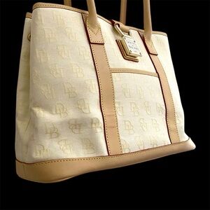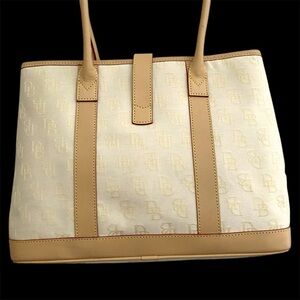 Dooney and Bourke Cream Fabric Logo Large Tote Satchel