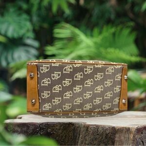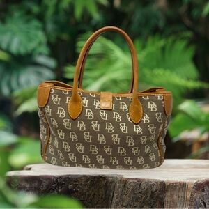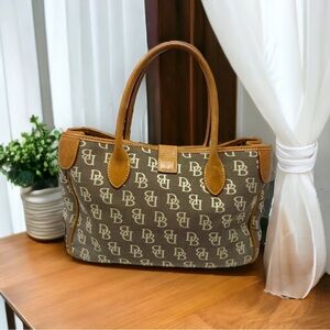 Dooney and Bourke Double Handle Khaki Logo Canvas & Leather EUC