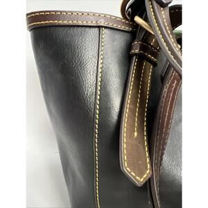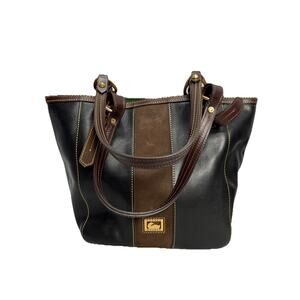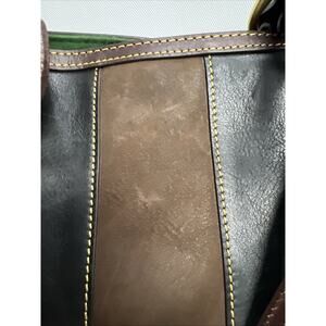 Dooney and Bourke Florentine East West Skylar brown black leather suede tote.