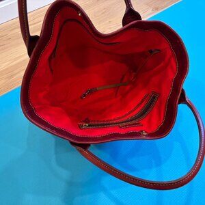 Dooney and Bourke Florentine Leather Tote Bag is vegetable-tanned in Italy. This full-grain leather is naturally milled for a supple feel and finished to highlight its depth of color. There are a few small scratches that you cannot help with this kind of leather. The leather bag is designed to soften and distress over time. Can buff the scratches out