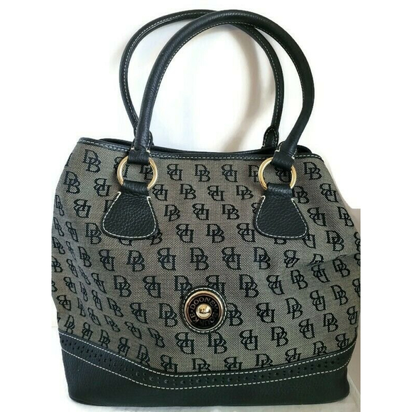 Dooney and Bourke Gray with Blue DB Logo Fabric Handbag