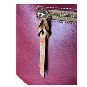 * Features: One main compartment, original unused registration form, zip pocket on back, zip pocket inside, slip pocket inside, braided leather zipper pulls