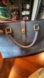 I purchased from QVC. Only worn a few times. This bag holds a ton!! The color is amazing. There is one corner/side that has smooshed a bit, as seen in the photos. And there is wear to the inside of the metal d rings where the straps touch. Again, as seen in the photos. It does come with the original web strap.