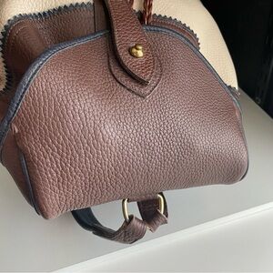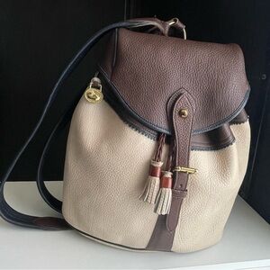 Dooney and Bourke Leather Teton Drawstring Backpack Bone Brown Navy multi color