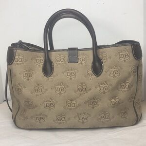 Inside split in to 3 compartments. Center compartment is zipper closure
