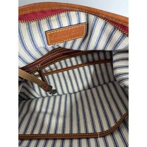 The Dooney and Bourke Navy All Weather Hobo Crossbody Shoulder Bag is a stylish and versatile accessory perfect for various occasions. Made with a combination of nylon and leather materials, this small-sized bag features a solid navy exterior with a pebbled finish and gold hardware accents. The adjustable brown leather crossbody strap adds a touch of classic elegance, while the interior lining in multicolor fabric offers a pop of color and functionality with inner and outer pockets, including a key clip. Ideal for travel, casual outings, workwear, and business settings, this designer bag exudes a nautical and coastal vibe, making it a must-have for any fashion-forward woman.