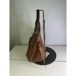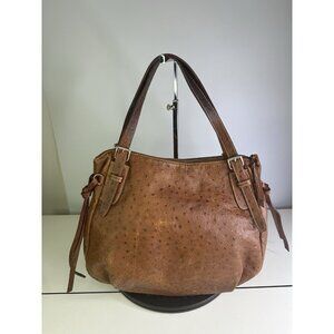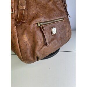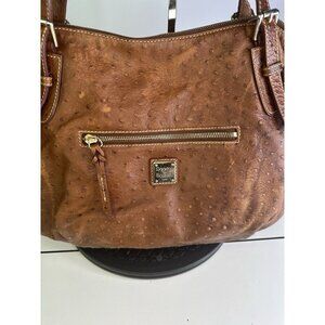 Dooney and Bourke Ostrich Brown Embossed Leather Shoulder Bag Logo Purse Zip