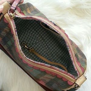 Fun colourful Dooney and Bourke purse with heart charm. Some stains inside and outside of purse as seen on the photos. Measurements: 9"x5". Feel free to ask any questions.