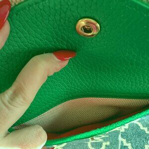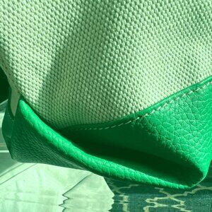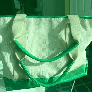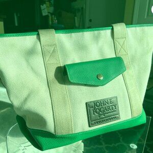 Dooney and Bourke The John Fogarty Foundation Invitational Tote Beige Canvas and Green Leather with red interior. Brand New. Never Used.