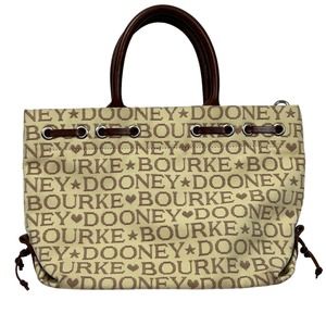 Dooney and Bourke Vintage Cream Brown Logo Jacquard Canvas Mini handbag