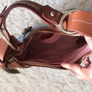 Blue with leather trim medium canvas hobo. Decently clean. Leather has no scratches.