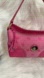 Beautiful Dooney and Bourke Purse is a rare bubble gum pink purse in excellent condition. One corner has light scuff wear as pictured. There is no fading on fabric. Zipper works great; one small pocket inside. Hardware is gold; wide strap; clean inside.