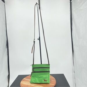 Dooney and Bourke green fabric crossbody leather trim embroidered duck