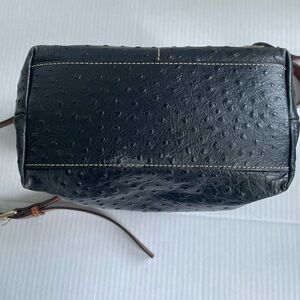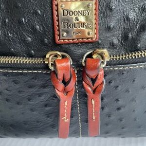 Beautiful ostrich leather dooney. Overall in good condition, minor wear on the corners and one spot of the bottom of the bag. Please see all pictures for condition. Strap is in excellent condition! No rips on the inside, slight discoloration around the inside toward the zipper but I have not tried to clean the interior at all and this could most likely be cleaned. Please feel free to ask additional questions