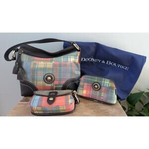 Dooney and Bourke plaid handbag with additional wristlet and pouch