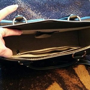 Brand new Dooney and Bourke Satchel with cosmetic bag. All black leather. Great condition. With key fob.