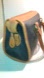 Bag measures approximately 11 1/2 inches length 7 1/2 height. Bag is in nice condition for its age and has some minor wear. The bottom leather and brass feet have some scratches, the piping around the bag has some fading from age. The handles have some scratches and fading. Inside of the bag is very clean and well cared for. A few ink spots and one ink spot on the top of the inside slip pocket.