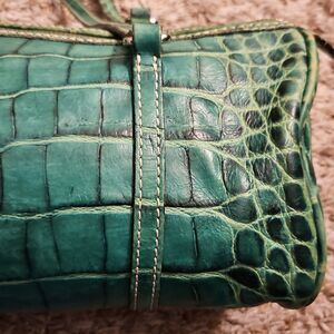 Dooney and Bourke Green Crocodile-Embossed Barrel Bag