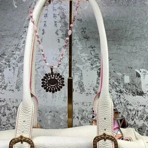Dooney and Brourke Cream and Pink Pebbled Leather Bag Vintage Marchesa Satchel