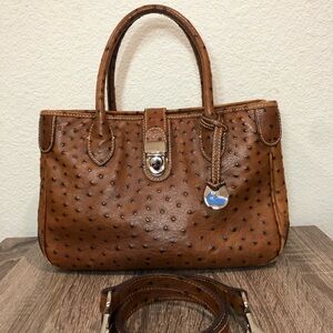 Super cute Dooney and Bourke ostrich leather. Purse is in very good condition. Interior has a mark shown in picture. Exterior conditions shown in pictures. This is a medium size tote. Not sure of exact color or measurements.