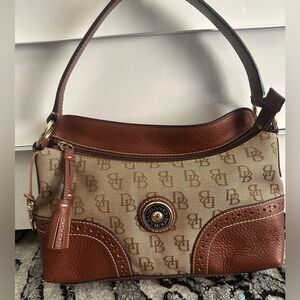 Used in good condition Dooney and Bourke Signature Canvas and Pebble Leather Hobo Satchel Shoulder Bag. Retail: $250