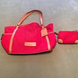 Gently Used Red n tan Dooney n Burke Tote Bag n cosmetic case included...