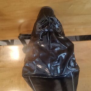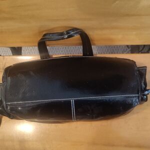 gently used Dooney & Bourke black large purse. Minor blemishes and wear on bottom corners black with white stitching and gold hardware