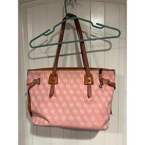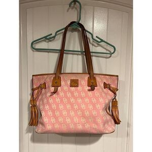 Dooney & Bourke Signature Tote Pink/off-white letters Side Tassel Tote