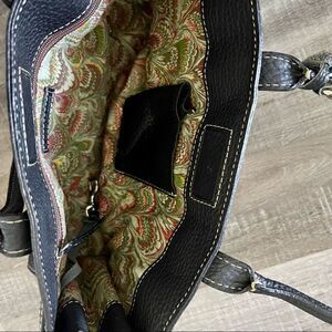 No stains or tears inside or outside of bag. Some wear near bottom of bag that’s comes natural with use. Expandable with tie and magnet closure.