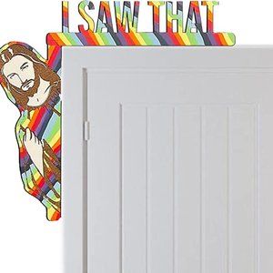 Door Frame Jesus I Saw That, Creative Funny Door Corner Hanger, Home Decor