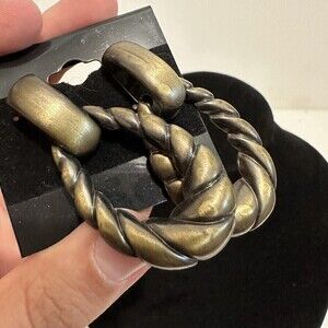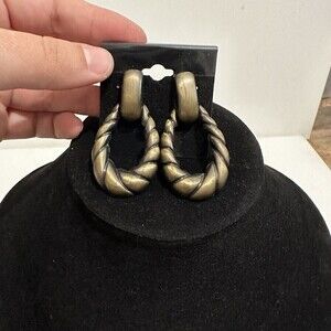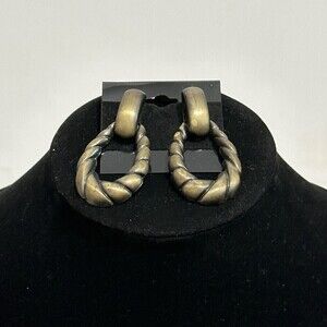 Door Knocker Pierced Earrings Dangle Mixed Metal Bronze Tone Round Rope 2.25"