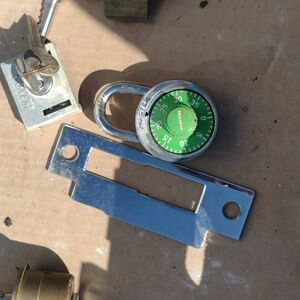 4 sliding door Locks &new combination lock &door striker plate &3 round cylinder Locks all in excellent used condition