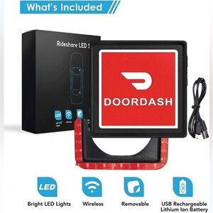 Bright red LED sign with DoorDash logo. Perfect for display.