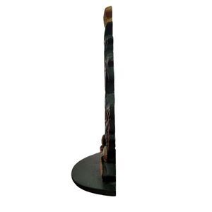 This item has lived a previous life, which is usually visible. It measures approximately 11 inches tall and the widest part measures approximately 6.5 inches wide. Could be used as doorstop or bookend.