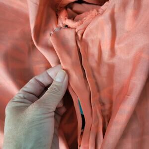 Handmade, unbranded, it looks like it has been altered or taken in the seams, and it will fit small to medium sizes. Please check the measurements.