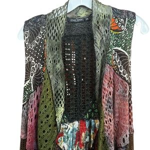 Dor Dor Couture Green Multi Mixed Media Artsy Sleeveless Sweater Cardigan Sz M