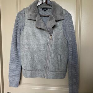 Dor Dor Couture brand. Knitted sleeves & inside lining with faux fur trim collar. chest area is fleece material. pocket on each side. size small. Excellent pre-owned condition. Almost like new, hardly worn.