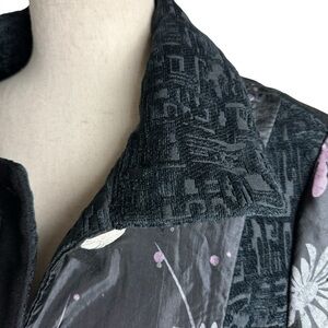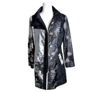 Dor Dor patchwork embroidery art to wear artsy floral button down coat. S