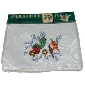 Dora May Vtg 4 Slice Oblong Toaster Cover Quilted Vinyl Embroidered Vegetables White New