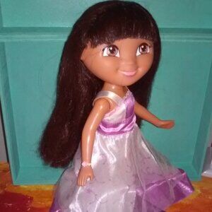 This Dora the Explorer Doll is in Very Good Condition, Dora wears a Lavender Dress that features white tulle